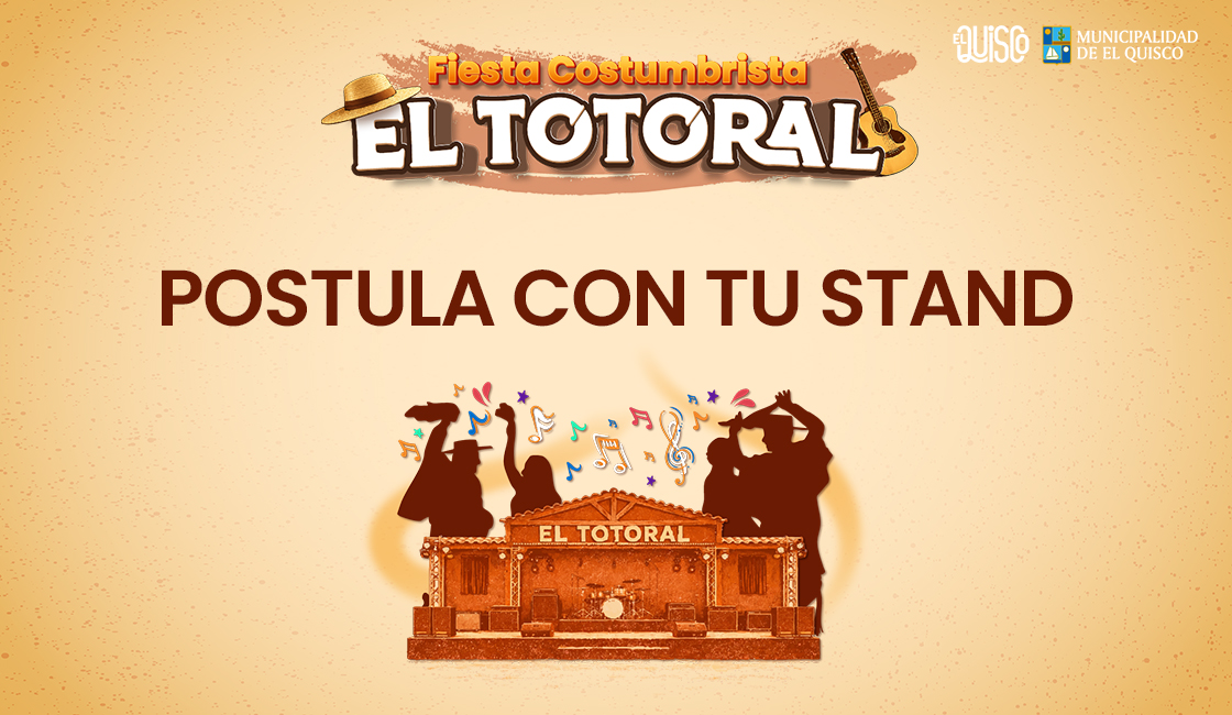 La Municipalidad de El Quisco invita a postular a stands gastronómicos para la Fiesta Costumbrista El Totoral 2026. Revisa requisitos y descarga las bases.